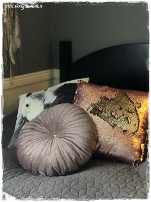 …mér finnst líka alltaf gaman að vera með púða sem ég get “leikið” mér með á milli herbergja. Vegna þess að ég er með svona álíka tóna inni í flestum rýmum, þá þýðir það líka að maður getur auðveldlega flutt hlutina á milli og gefið þeim svona “nýtt líf” – eins og þegar éh m…