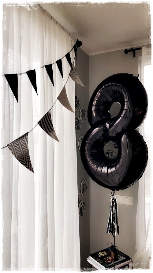 …ég keypti sem sé fánalengjur og stóra 8-blöðru í Partývörum, því mér finnst þetta gera svo mikla stemmingu…
