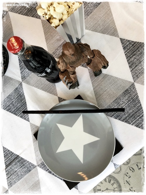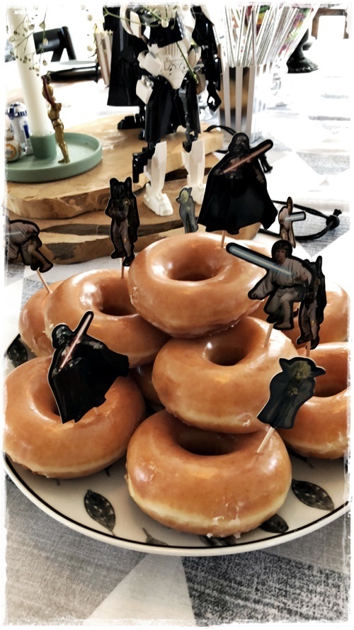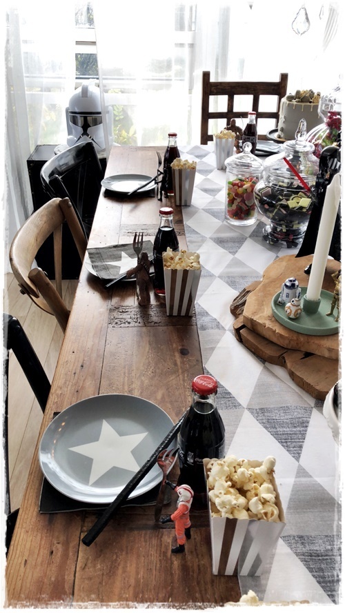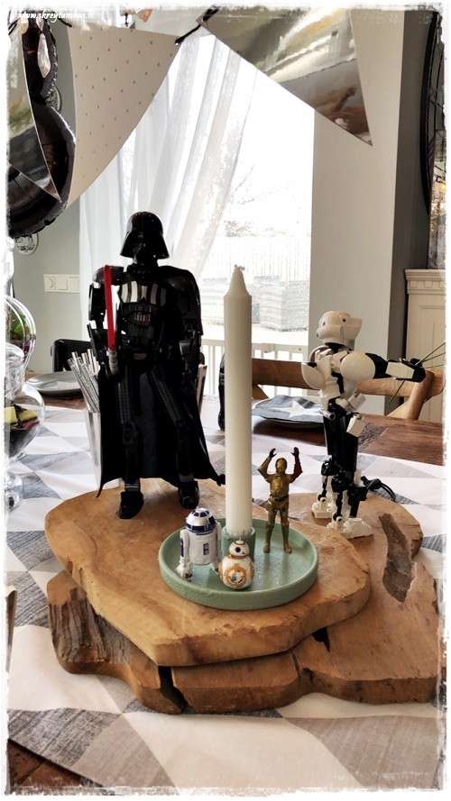 …þar sem hann á auðvitað eitthvað af Star Wars leikföngum, þá notaði ég þau bara til skreytinga á borðinu. Litlu kallarnir voru sérlegir gaflahaldarar…