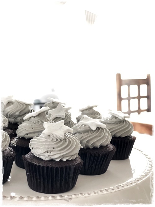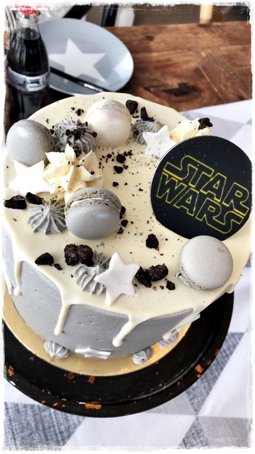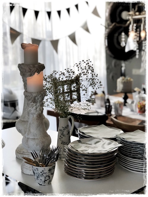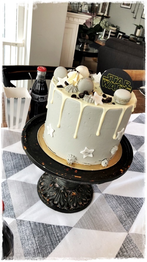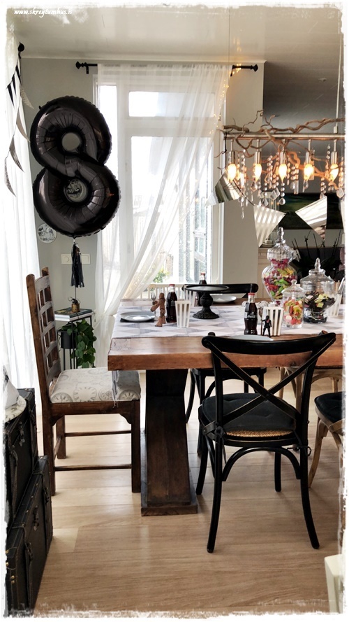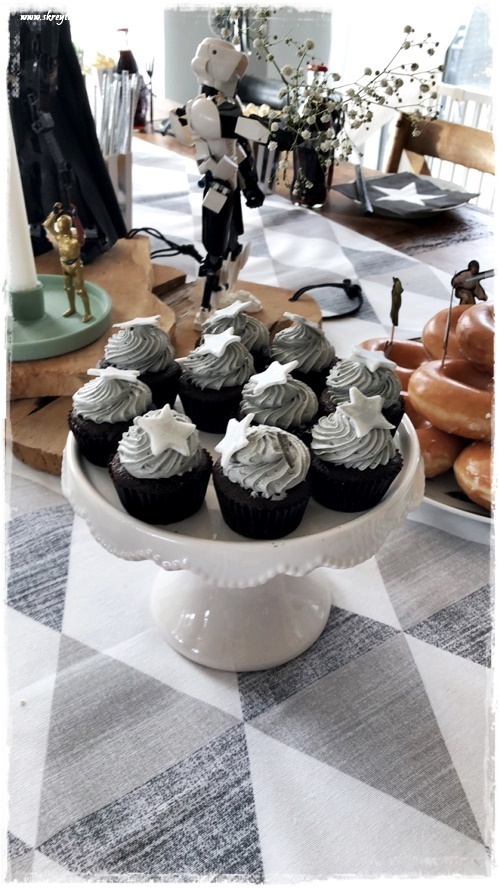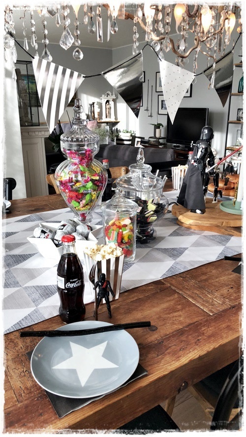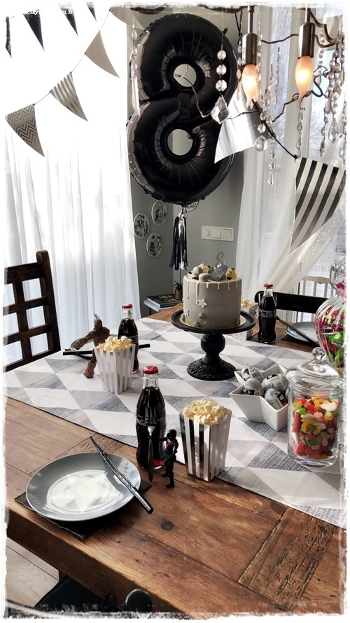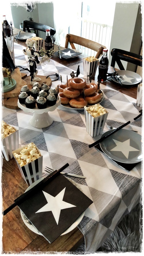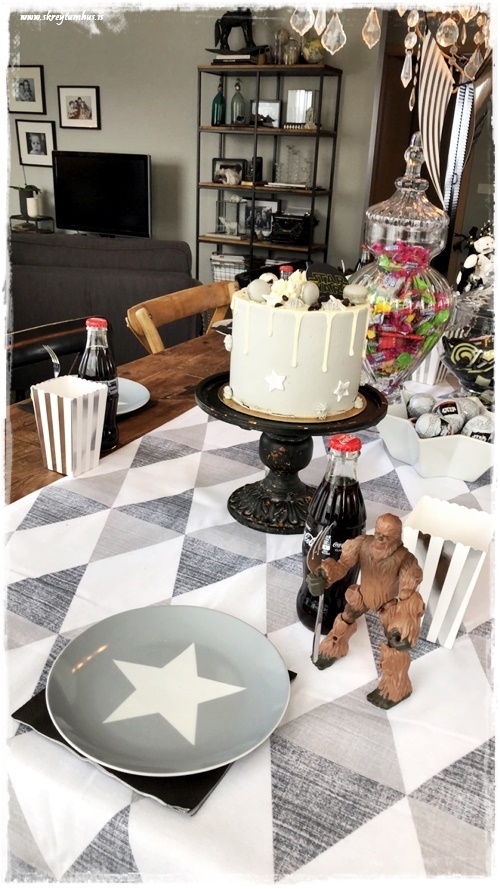 Drengurinn vildi sem sé Star Wars afmæli, og hann er hrifinn af svörtu og hvítu – skelltum smá silfur og gráu með, þannig að la voila, ca about þemað komið!