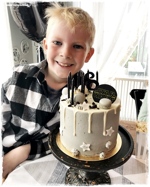 …ég er nefnilega mjög hrifin af því að hengja sig ekki of mikið í þemað, þannig að þessi kaka var pörfekt – hún er falleg, töff og drengurinn var yfir sig hrifinn!