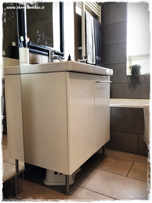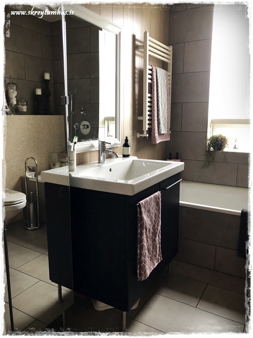 …það eru núna komin 10 ár síðan við fluttum inn í húsið okkar.  Við settum upp einfalda innréttingu á baðinu frá Ikea, enda var þetta í hruninu og Guð var að blessa Ísland og allt í volli.  Við vissum ekki næstu skref, og fetuðum okkur því rólega áfram.  Tókum engu óðslega.