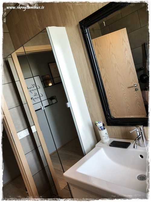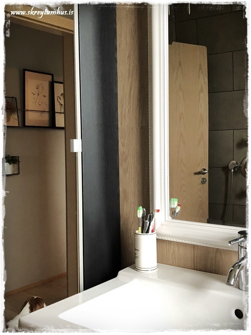 …hliðarnar á stóra skápnum eru að gefa þessu mikinn svip, því að vaskurinn er svo hvítur og stór að það var gott að brjóta aðeins upp með svörtu…