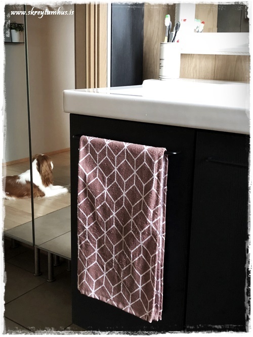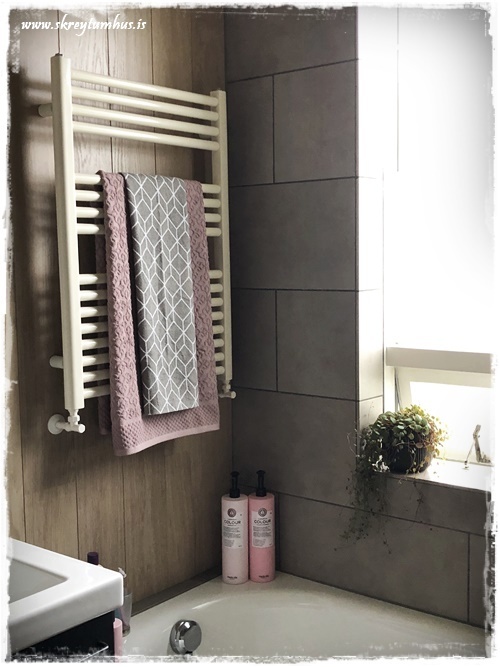 …síðan fékk ég mér nokkur ný gestahandklæði í Rúmfó, og ákvað að vera svakalega villt og fara í smá bleika tóna með þessu svarta…