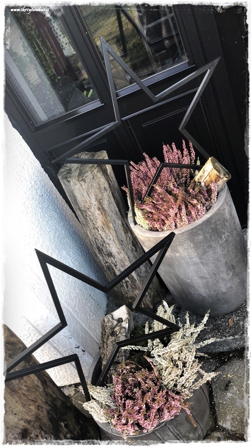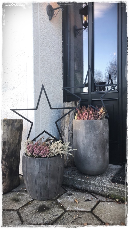 …ég tók líka tvær stjörnur í minni gerðinni, og setti í blómapottana fyrir utan hjá okkur…