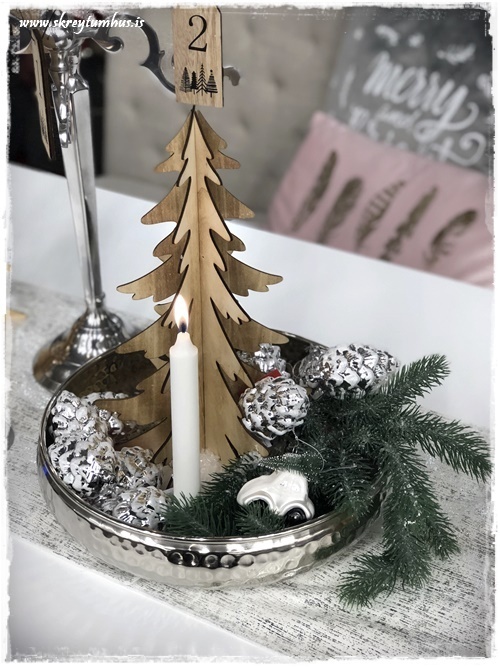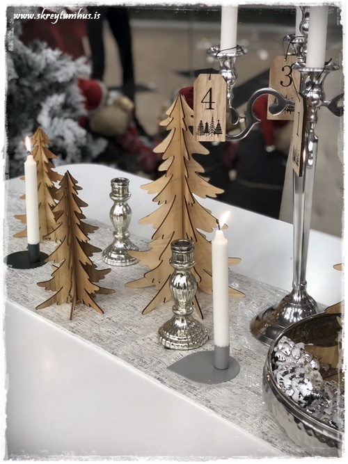 …og gaman að blanda kertastjökum. En trén eru alveg möst með, þau gefa svo mikinn hlýleika, viðurinn er það sem þarf þarna með…