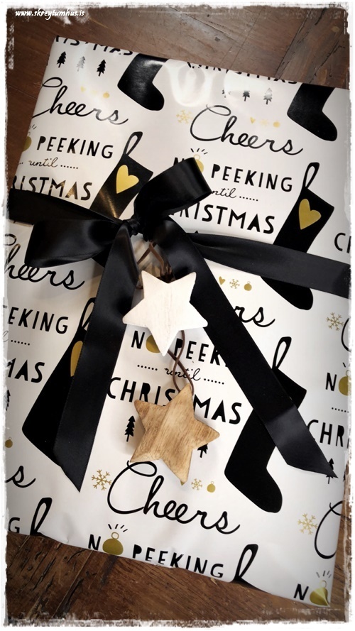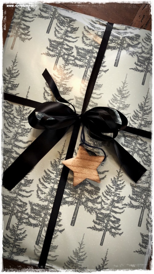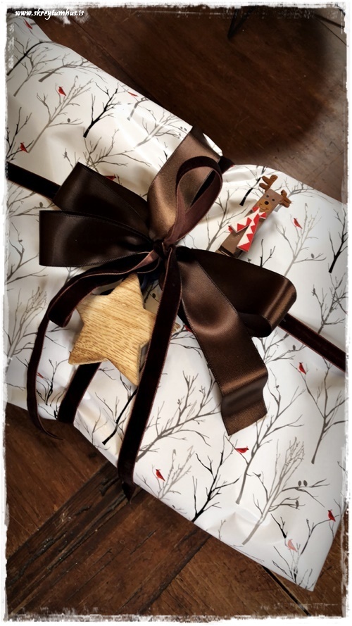 …svo er það stundum, að þegar allt kemur saman – pappír, borði og skraut – að maður fellur alveg fyrir kombó-inu. Þessi hérna pakki er í algjöru uppáhaldi hjá mér…