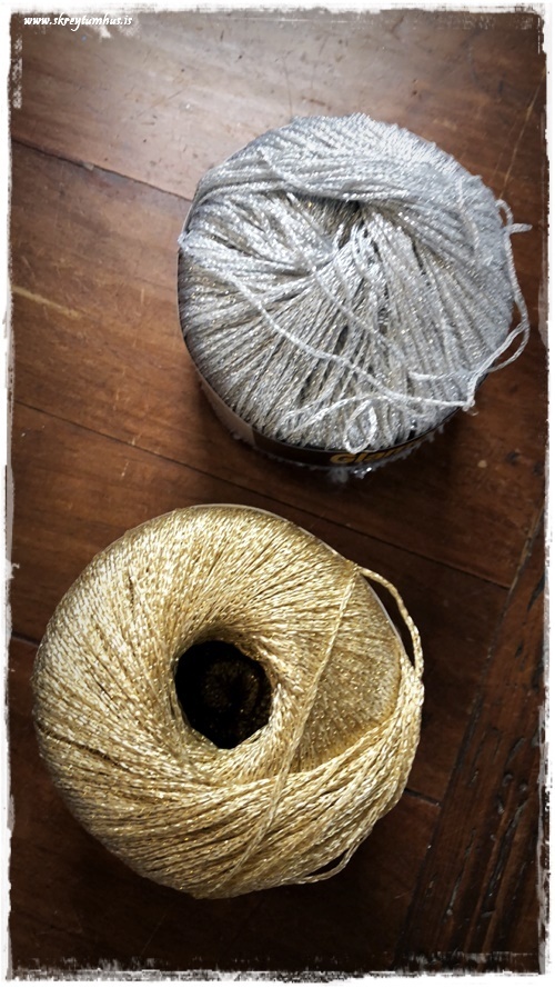 …svo tók ég tvo hnykkla sem eru með smá glitri, og þannig ertu komin með smá bling með…