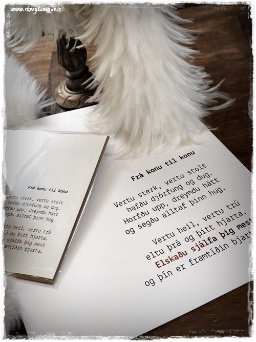 …í fyrsta lagi er það fallega ljóðið: Frá konu til konu – sem kemur í tveimur stærðum (sjá hér).