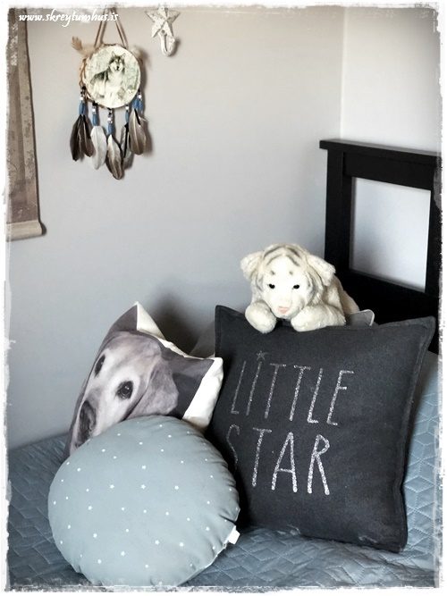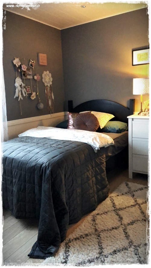 …dóttirin er með dekkri litinn á rúminu hjá sér. Rúmið er 120cm á breidd og þetta kemur vel út…