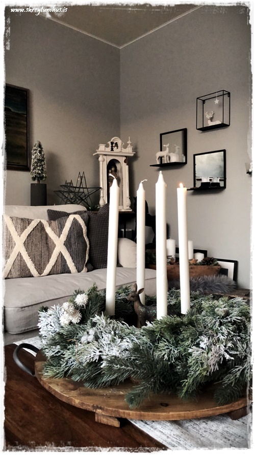 …og ég sá inni á SkreytumHús-hópnum og það var ein sem notaði þessa stafi (sjá hér – smella) til þess að festa jólasokka í þetta á arni, kom fallega út…