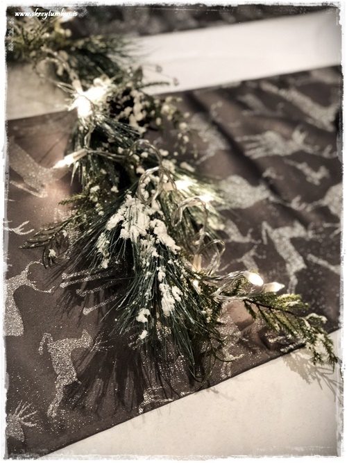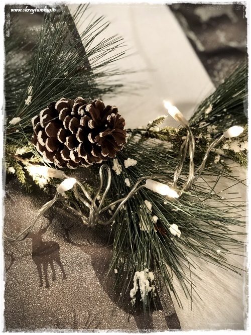 …ótrúlega falleg grein, og alveg ein með öllu.  Það eina sem ég bætti við var að leggja síðan seríu ofan á og leyfa henni að liggja eftir borðinu…