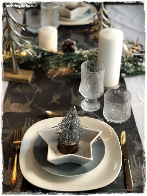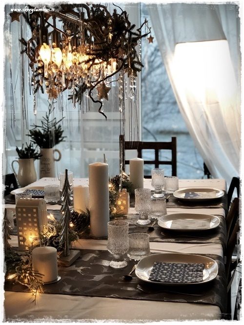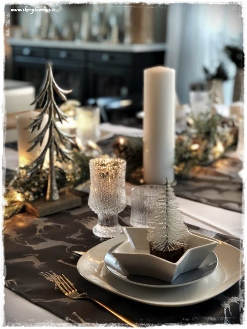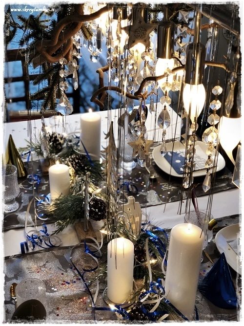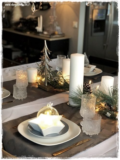 …ég ákvað að prufa að gera aðeins öðruvísi póst.  Venjulega þá geri ég jólaborð, og svo breyti ég alveg öllu fyrir næsta jólaborð, eða áramótaborðið.  En ég veit að það eru ekki allir sem eru svona skreytibreytiglaðir eins og ég, og því ákvað ég að segja upp hátíðarborð sem var jóló, en færa það síðan yfir í áramótin með örfáum einföldum breytingum.  Hljómar það ekki bara skemmtilega?
