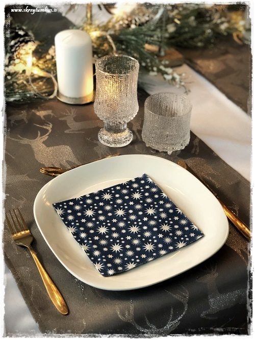 Aftur er ég að vinna með áramótavörur, servéttur og kerti frá Heildversluninni Lindsay, sem að fást m.a. í Krónunni, og er pósturinn unninn í samvinnu við Lindsay.