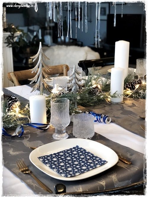 …ég er líka að fíla vel bláa litinn með á borðið, hann er alltaf hátíðlegur…