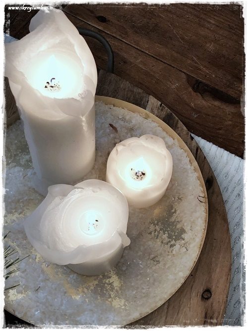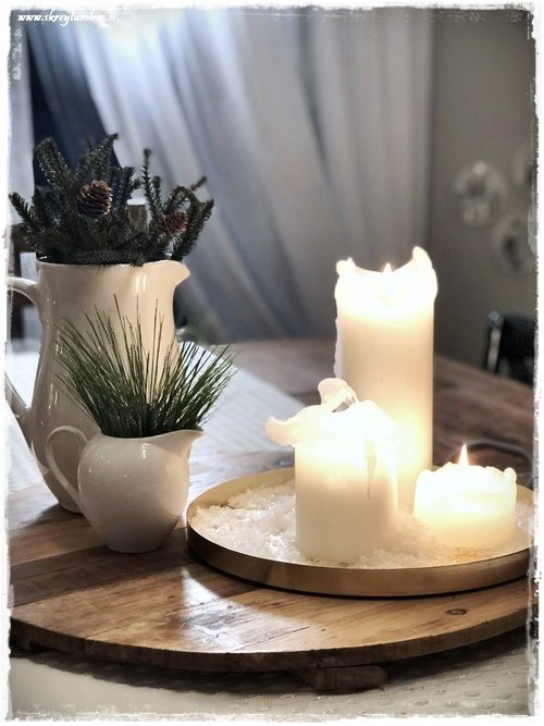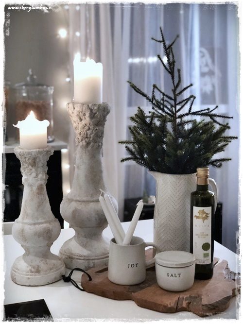 …það var meira segja þannig að ég fann ekki fyrir vott af stressi, heldur bara gleði og spennu. Þannig að ég var bara nokkuð góð með mig og klappaði sjálfri mér á bakið að verki loknu. En yfir í annað, þá langaði mig að taka ykkur í smá hring í eldhúsinu svona að jólum loknum. Svona til þess að sýna ykkur hvað ég held eftir af “jólaskrauti” og það breytist sí svona í vetrarskraut.