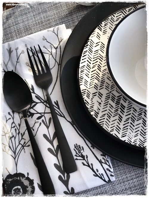 …síðan finnst mér alltaf gaman að reyna að sýna ykkur ferlið, eða pælingarnar á bakvið hvað ég vel og hvers vegna. Hér valdi ég diskamottur frá Rúmfó, sem mér fannst passa fullkomlega með diskunum. Þær eru ljósgráar og bara smellpössuðu (sjá hér)…