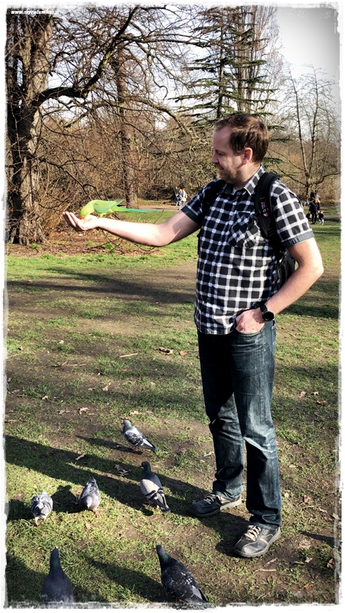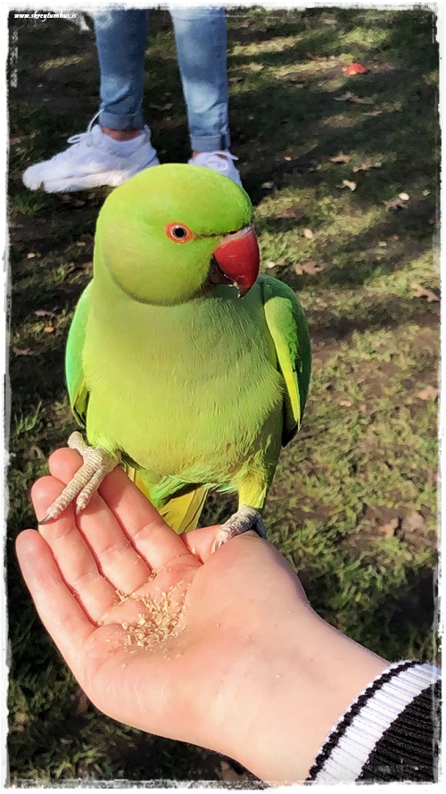 …og aftur eru það þessir litlu óvæntu hlutir sem verða á vegi manns, sem að skapa skemmtilegustu stundirnar. Eins og að rekast á helling af villtum, en gæfum páfagaukum sem eru í garðinum og fólk er að gefa þeim korn. Við hittum þarna yndælis karl sem gaf okkur öllum korn í lófa. Við spjölluðum aðeins saman og nutum þess að upplifa eitthvað sem gerist ekki heima á Íslandinu okkar…