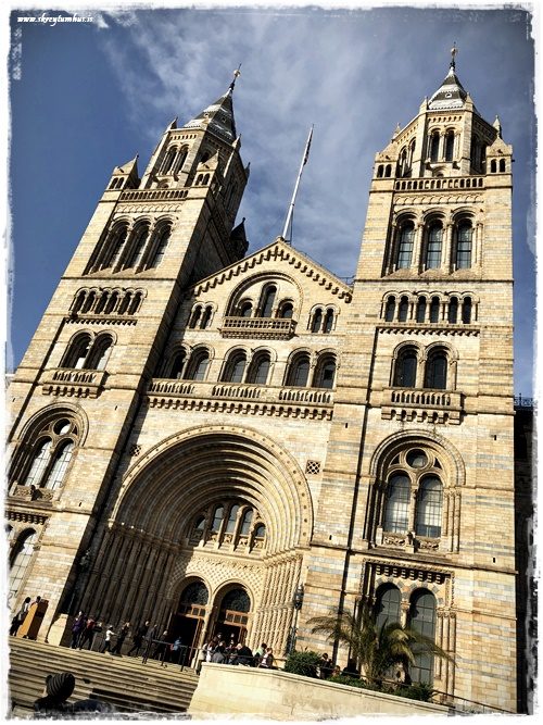 …síðan gengum við að Natural History Museum, en það var svakalega löng röð þangað inn – sem gekk samt furðuhratt. Safnið er mjög skemmtilegt að rölta um og aðgangurinn inn er frír. Alltaf skemmtilegt að fá að skoða risaeðlubein og bara allt mögulegt. Auk þess sem byggingin sjálf er stórkostleg að innan og utan…