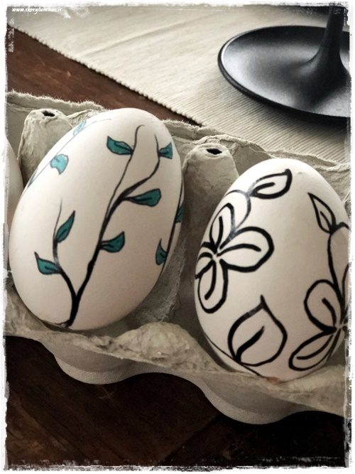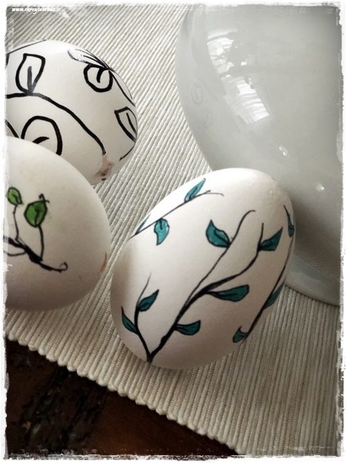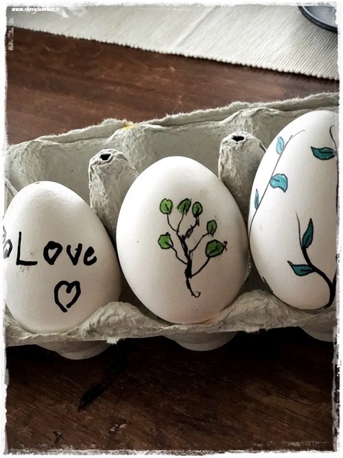 …talandi um að blása úr eggjum, þá ákváðum við að prufa að skreyta þau bara með pennum og það kom skemmtilega út. Einfalt og fallegt…