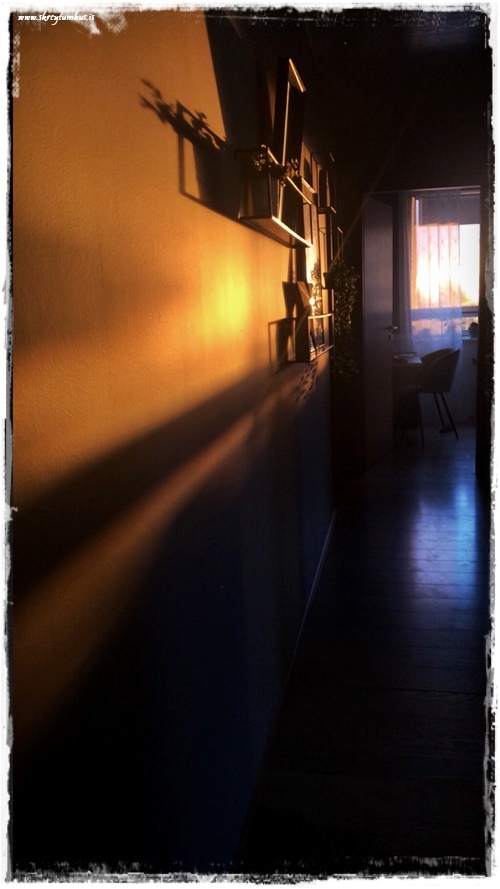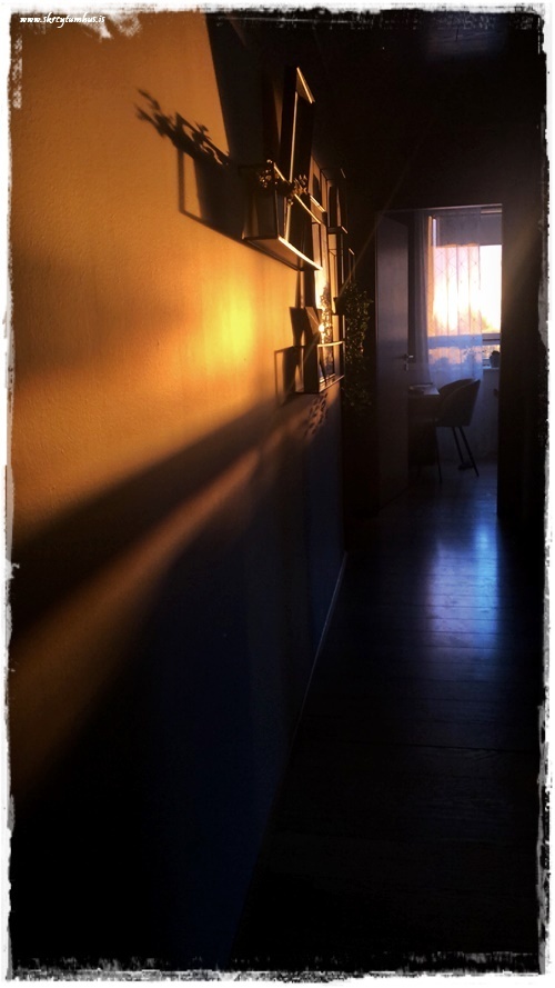 …þetta rennur allt saman í eitt um þessar mundir. Eina dásamlega sólríka heild, og það er nú ekki oft sem maður getur sagt það. Grúbban hérna á ganginum breytist örlítið eftir því hvar sólin er á himnum, og virkar eins og hálfgerð risaklukka. Hér er bjartur dagur…
