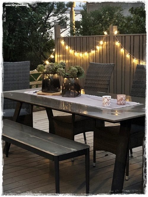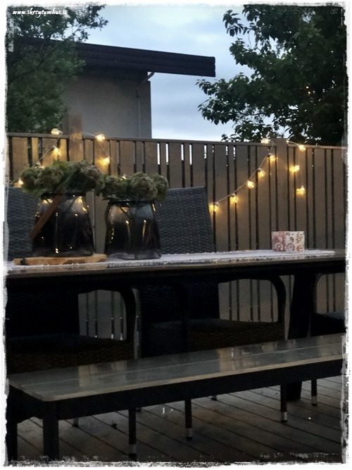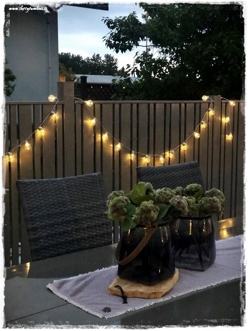 …svo í rökkrinu er yndislegt að setja smá ljós á pallinn…