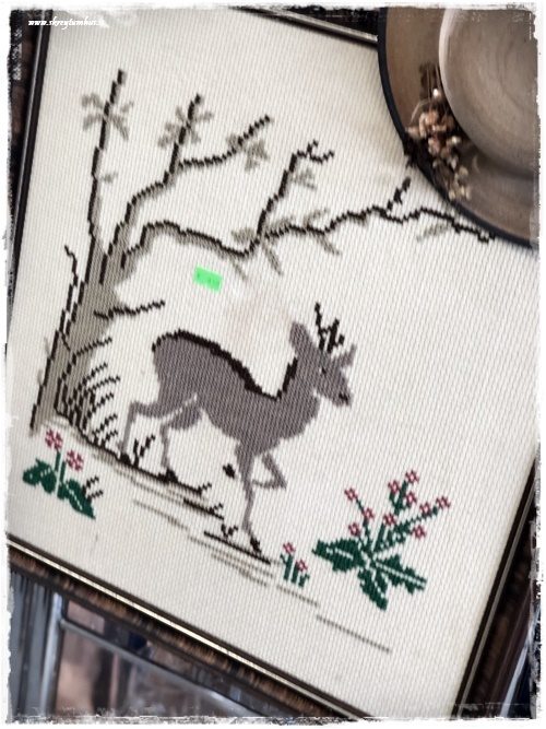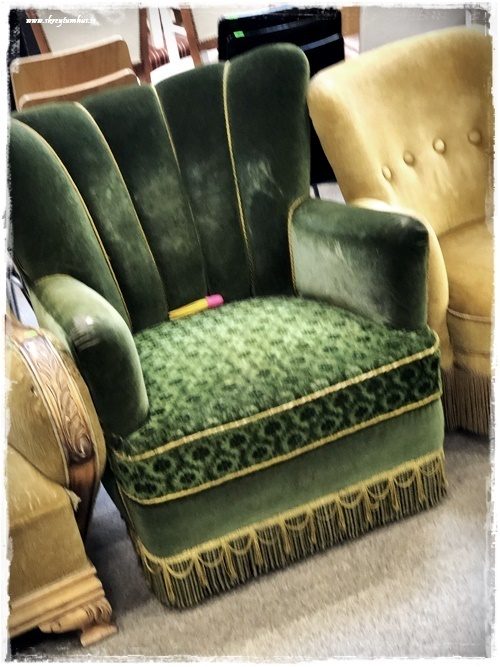 …smá bambakrútt í krosssaumi, og þessi stóll – það væri hægt að gera eitthvað skemmtilegt með hann…