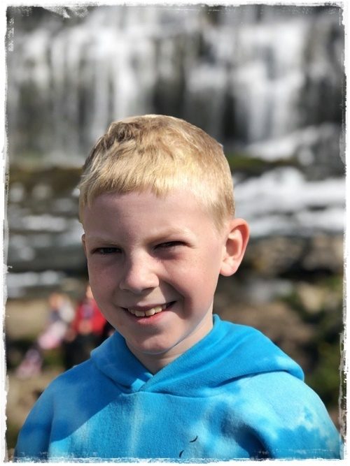 …eitt af því sem ég elska svo mikið við þennan dreng minn, er að hann kann að stoppa við og njóta. Eins og hér þegar ég rak augun í að hann var kominn frá okkur hinum og farin að tína saman smá blóm í vönd.