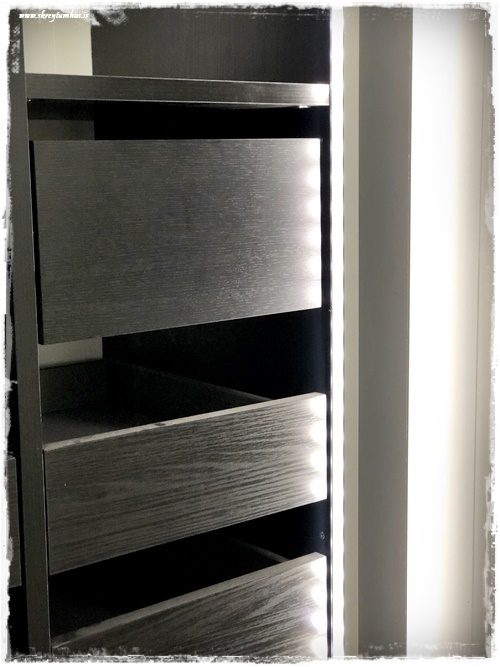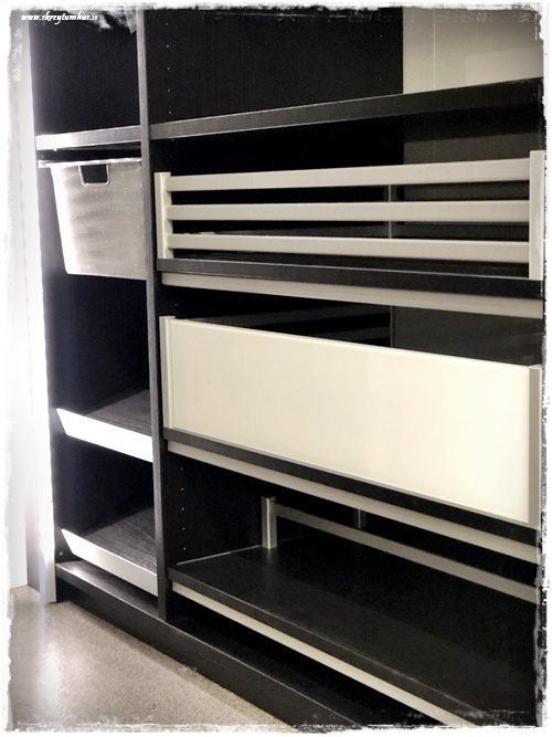 …þessi innrétting, þetta er ekki eitthvað sem ég er venjulega að falla fyrir – en þetta eru viðarskúffur og ég var bara stöðugt að spá í hvað þetta yrði flott í búr, auðvelt aðgengi og stílhreint…