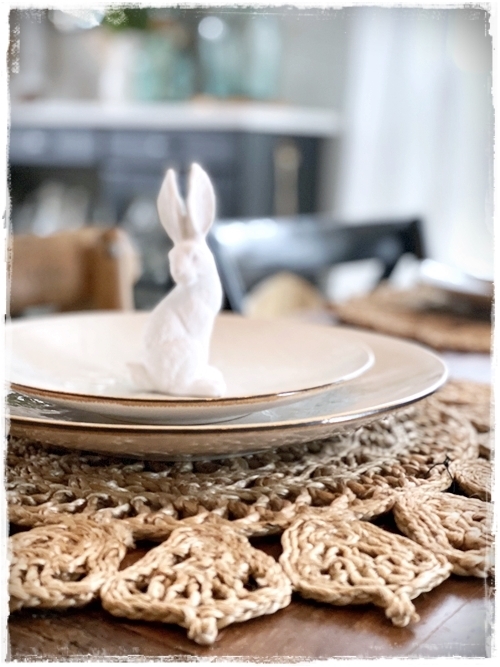 …ég setti bara kanínur á tvo diska, en svona litlar “servéttukörfur” fyrir egg á hina…