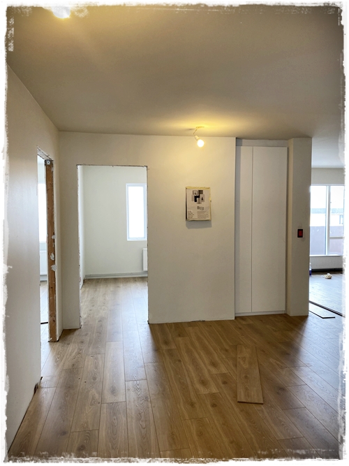 …eins og gefur að skilja þá eru verkefni misjöfn. En ég fékk eitt alveg ótrúlega spennandi verkefni núna í febrúar, sem hefur dregist aðeins fram á vorið – sökum heimsfaraldar og alls þess sem hefur verið að ganga yfir þessa dagana. En þannig er mál með vexti að blokkirnar sem eru á gamla “vellinum” – svæðið Ásbrú hefur verið að ganga í gegnum mikla endurnýjun. Það er búið að að taka þessar blokkir algjörlega í gegn, skipta út innréttingum og gólfefnum, gluggum og öllu slíku sem þarf og eftir standa fallegar, bjartar og stórar íbúðir. Þetta er í raun ótrúlega skemmtileg endurvinnsla og þetta hverfi á bara eftir að verða skemmtilegra. Nýr grunnskóli að fara í byggingu og hverfið á uppleið. Maður finnur það líka eftir að hafa keyrt brautina nokkrum sinnum, að þetta er bara pörfekt akstur fyrir eitt podcast eða tvö góð símtöl.