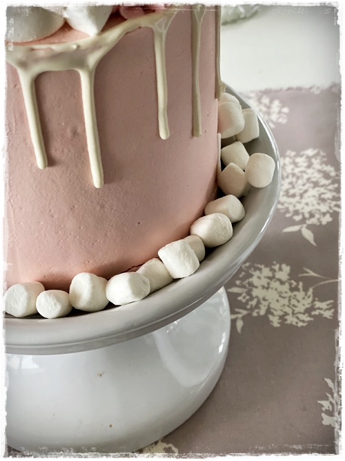 …kökutoppurinn kemur frá Puha Design, smella hér, og er skammstöfunin fyrir dótturina, VA. Mér finnst þetta vera svo fallegt og hátíðlegt, og skellti svo bara einni rós og auka makarónu ofan á, svona til þess að klára verkið!