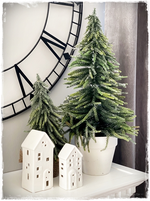 Sjáið nú bara hversu falleg þessi tré eru. Svo þegar þið eruð búin að dáðst að því, þá má horfa á litlu húsin og dáðst að þeim. Svo falleg hvít keramikhús, með innbyggðu batterýsljósi – ég er hamingjusöm!