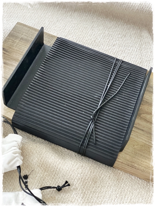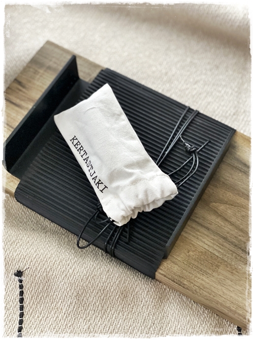 …Guðný var svo elskuleg að senda mér brettið og lét fylgja með fjóra kertastjaka – og ég vek líka athygli ykkar á hversu fallega þetta er pakkað inn og frágengið…