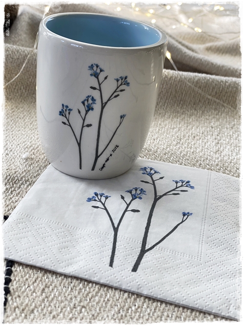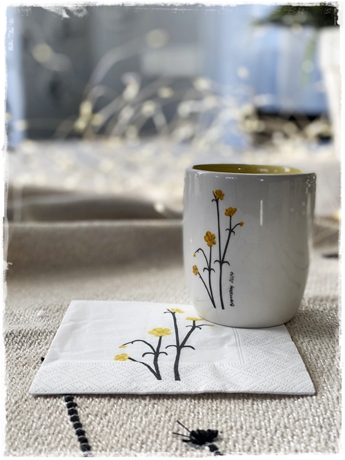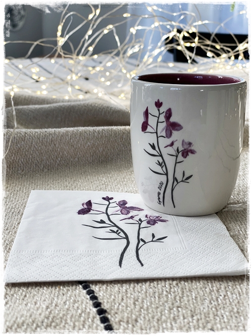 …síðan til þess að fullkomna þetta alveg, þá eru komnar fallegar kaffiservéttur í stíl, þannig að hver bolli á sína servéttu…