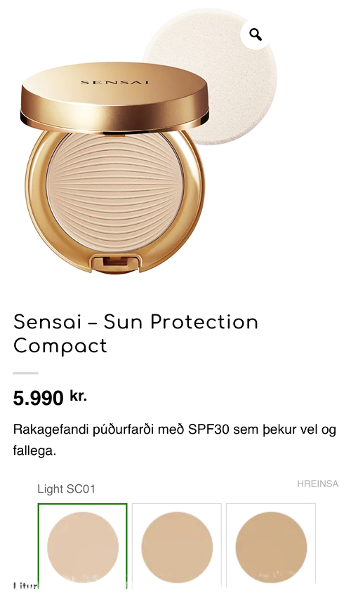 Sensai – Sun Protection Compact – þetta var ég að prufa í fyrsta sinn núna í haust og ég elska það, finnst frábær þekja og virkilega falleg áferð.