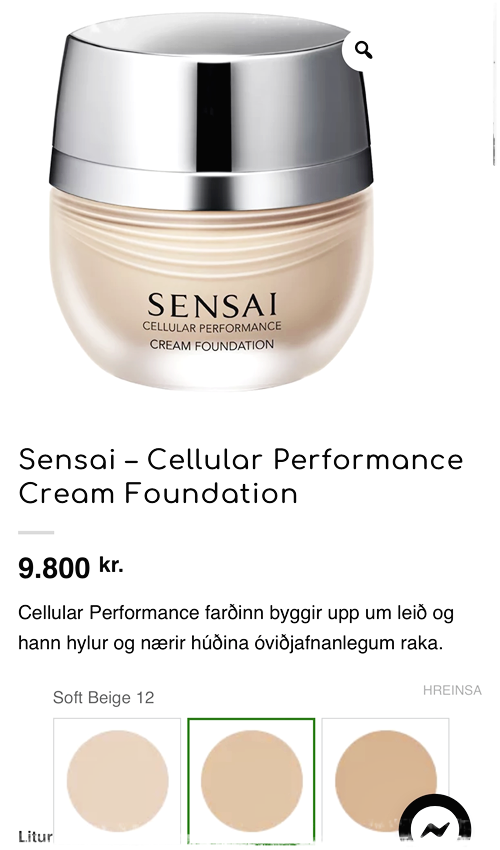 Þegar ég lagði af stað í þessa þáttagerð þá var ég mikið að spá í bæði fatnaði og snyrtivörum. Sérstaklega var mér umhugað um snyrtivörur þar sem ég var alls ekki ánægð með meikið sem ég var að nota og fannst það ekki haldast vel á andlitinu. Ég spurði þá hana Evu Laufey ráða, enda lítur hún alltaf óaðfinnanlega út, og hún sagði mér að tala við þá sem flytja inn Sensai-snyrtivörurnar, að þær bara gætu ekki klikkað.