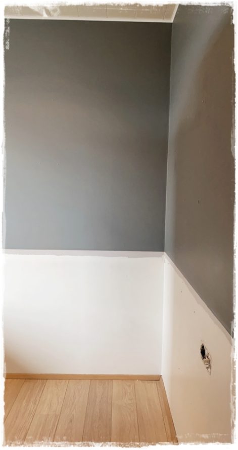 Daman valdi sér 1/2 Sand frá Slippfélaginu* á veggina, en hann er alveg afskaplega fallegur – í raun hlutlaus en samt svo hlýr ljósgrábrúnn litur, samt meira út í brúnan en grátt…