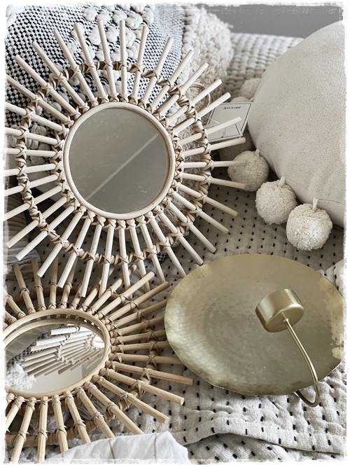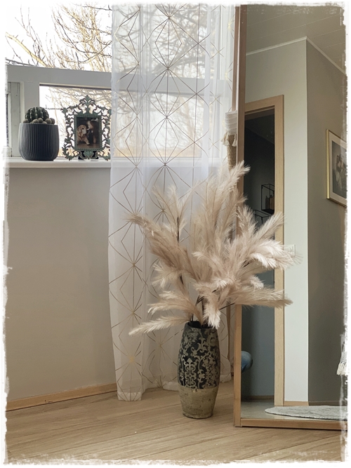 …hatturinn er frá því í fyrra og draumafangarinn er gamall og verslaður erlendis, gyllti kertahringurinn er gamall úr Byko* en dásamlega fjaðrahálsfestin er frá Húsgagnahöllinni*. Báðar plönturnar eru frá Rúmfó* en gyllti potturinn fæst í Ikea..