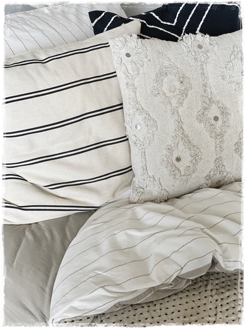 …ég var búin að velja saman nokkra hluti sem fékk frá okkur í afmælisgjöf. Þar á meðal var rúmteppið, sem mér finnst æææææði og svo púðarnir flestir og eru frá H&M Home…