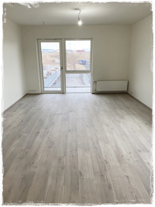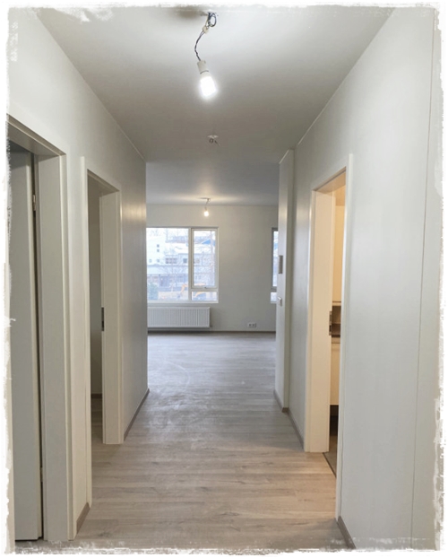 Þetta var alveg ótrúlega spennandi verkefni – og ég ætla að deila þessu með ykkur í nokkrum póstum. Hér sjáið þið myndir af íbúðunum eins og þær líta út, málaðar hvítar, með fallegu parketi og glæsilegum innréttingum.