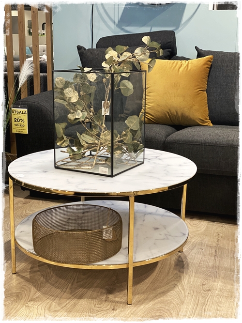 …dásamlegt hvað fallegt sófaborð getur poppað mikið upp, þetta hérna með marmaraplötu og gulli er gordjöss – smella hér…