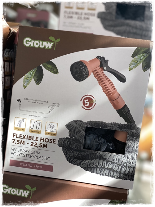 …þessir litlu sniðugu hlutir, eins og vatnsslanga sem dregst út í 22m – eða led sólarselluljós, snilld í beðin…