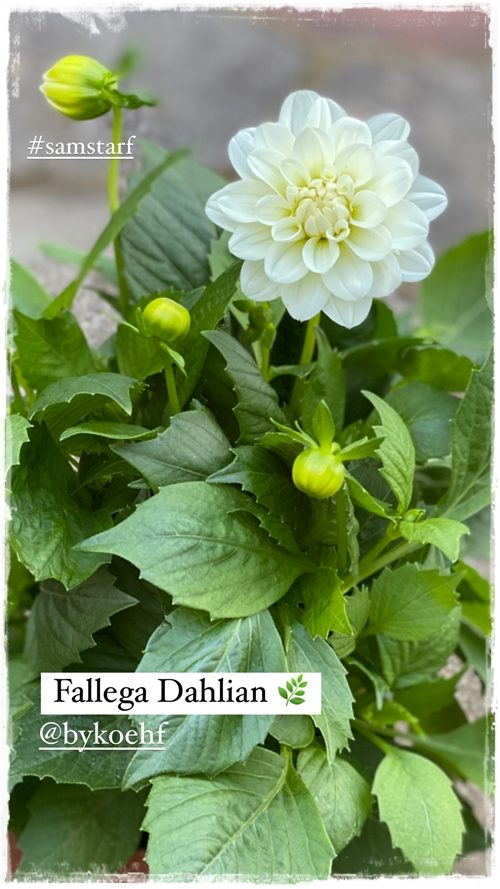…eins setti ég saman í pott sýpris sem er búið að klippa í kúlu, ásamt dahlíu og skrautkáli og ég er svo skotin í hvernig þetta kemur út…