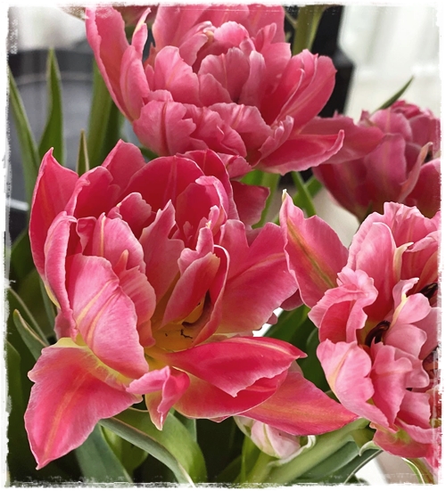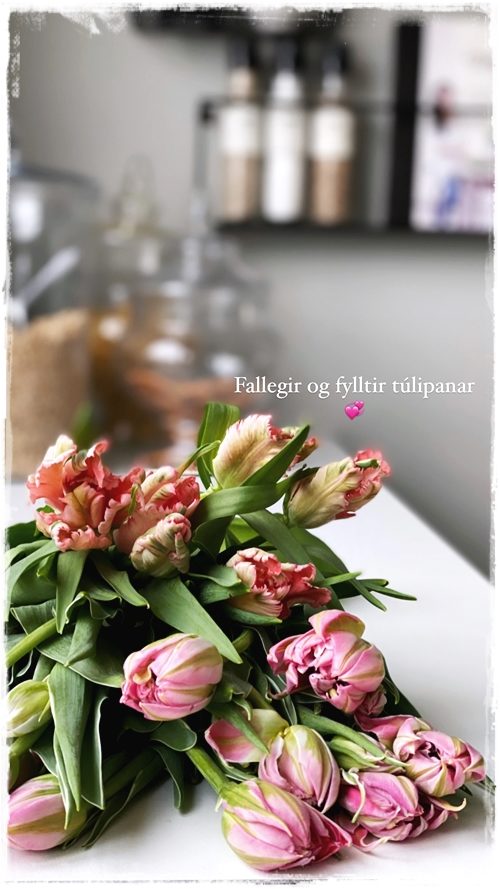 Túlípanar og bóndarósir eru enn að koma inn í miklum mæli og það er víst óhætt að mæla með að njóta þeirra á meðan kostur er…