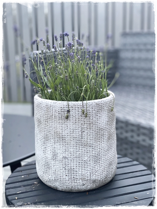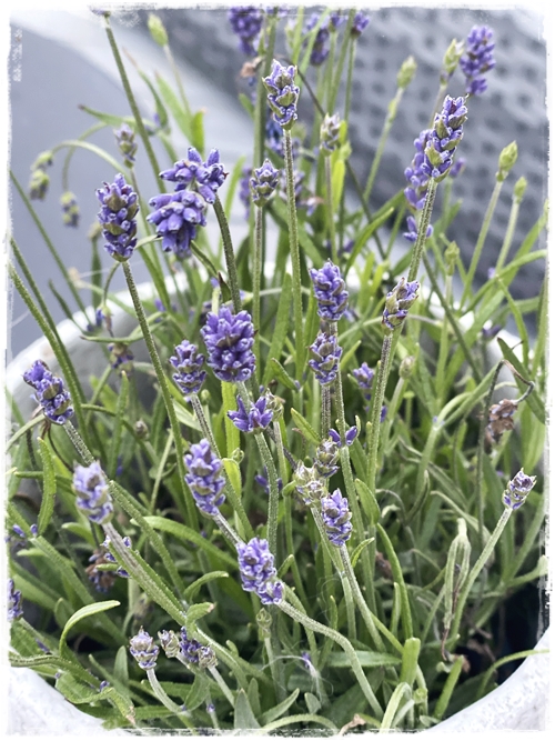 …Lavender í potti á pallinum, svo fallegur…