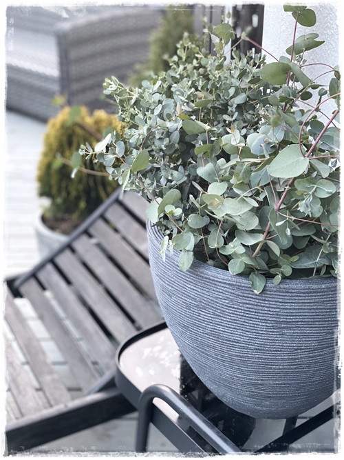 …eitt af því sem er í miklu uppáhaldi hjá mér eru Eucaluptusar í pottum, en þeir eru hreint geggjaðir. Mér var sagt að það væru allar líkur á að ná þeim aftur til að vori og ég hlakka mikið til að sjá hvernig það verður…