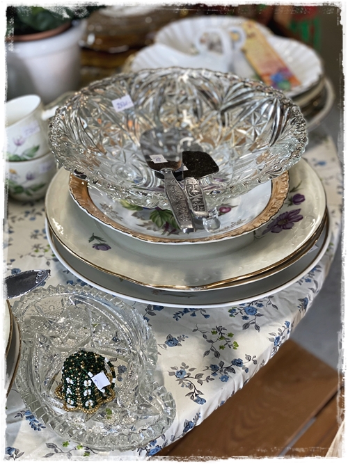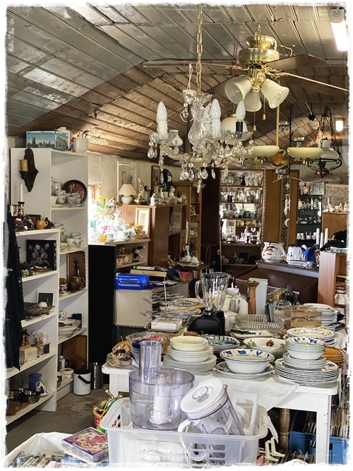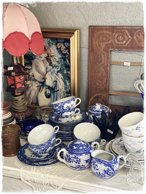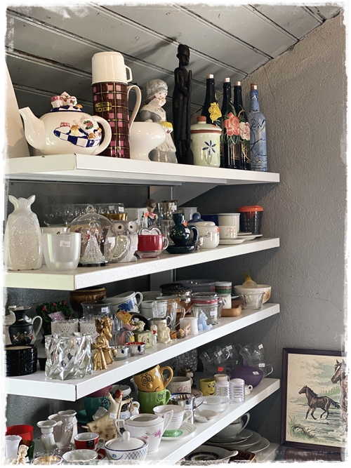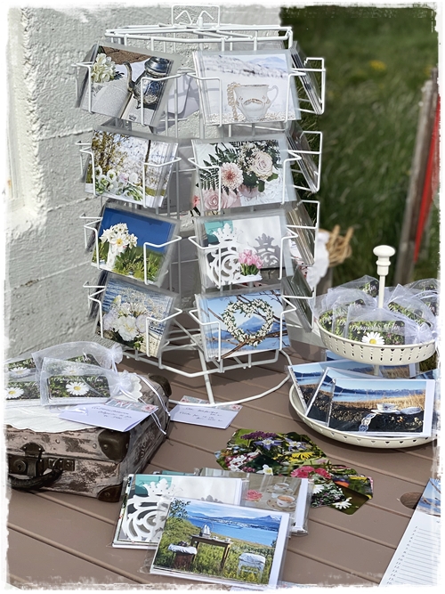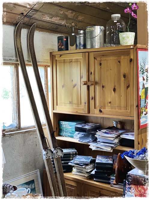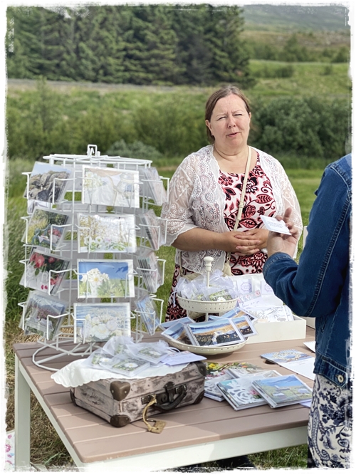 …og það er nú alveg í stíl við húseigandann en það er dásemdin hún Kristín, sem er með Blúndur og blóm, sem þarna býr – og hún var einmitt með fallegu vörurnar sínar fyrir utan skemmuna…