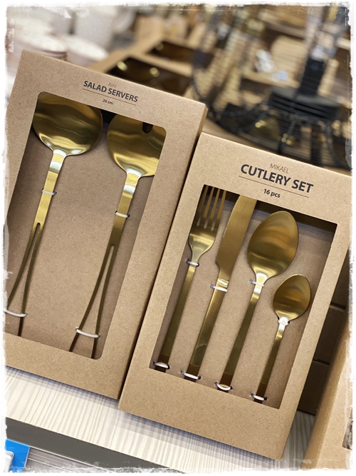 …hér sjást skrautgreinarnar og dásamlegu gylltu hnífapörin…