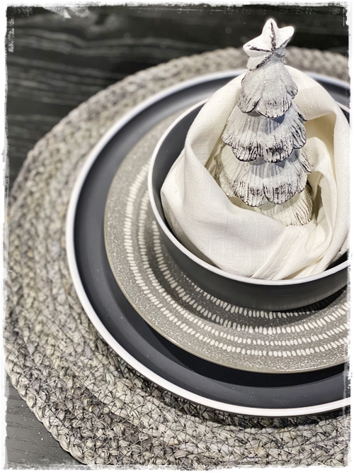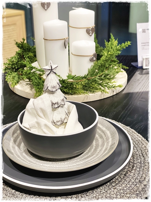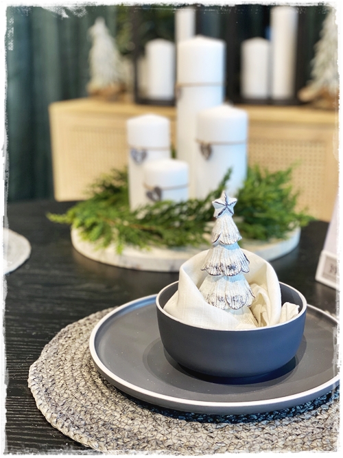 …þessi kringlótta bastmotta er í uppáhaldi hjá mér fyrir jólatrésdúk…